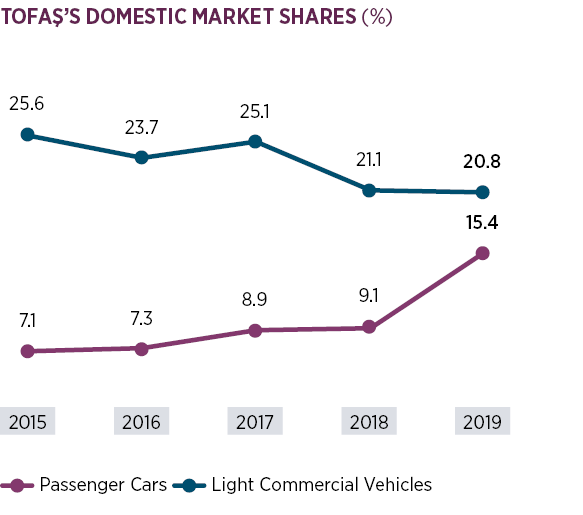 Tofaş increased its domestic-market passenger car sales as a result of the successful performance of its Egea family.