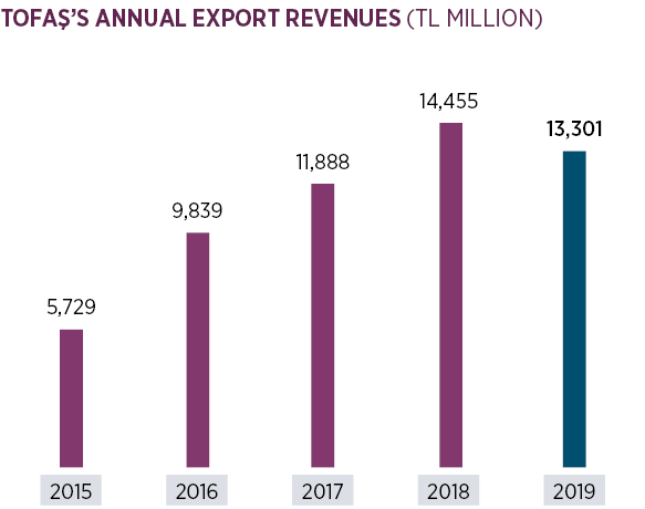 In view of these sales results, Tofaş’s export earnings were down by 8% year-on in 2019 and weighed in at TL 13,301 million in value.