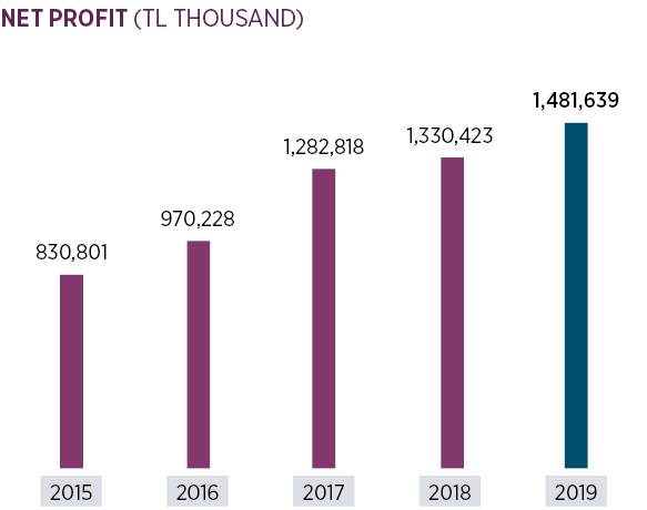 Net profit was up by 11.4% in 2019 and amounted to TL 1,482 million.