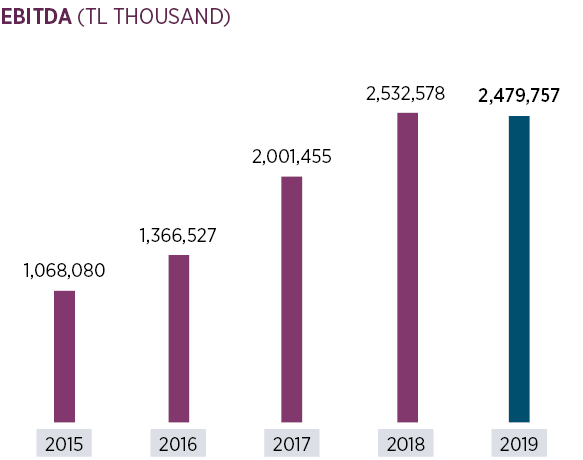 Down by 2.1% in 2019, EBITDA weighed in at TL 2,480 million.