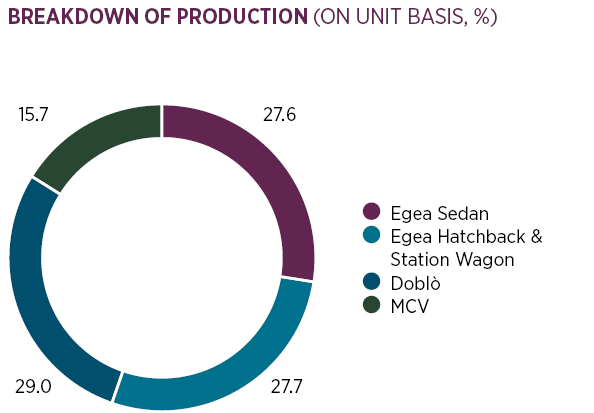 Tofaş’s investments in 2019 amounted to EUR 106.6 million in value. The biggest share of Tofaş’s total investments in 2019 went to the company’s Egea Project.