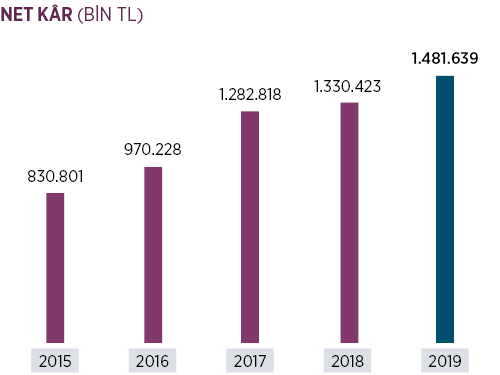 Net kâr 2019 yılında %11,4 oranında artışla 1.482 milyon TL olmuştur.