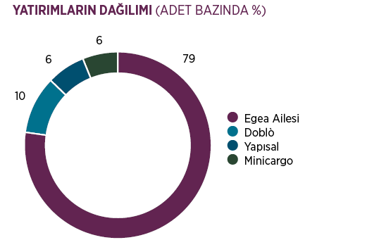 Tofaş 2020 yılında 108,3 milyon Euro yatırım harcaması gerçekleştirmiştir. 2020 yılında toplam yatırım tutarının ağırlığını Egea Projesi oluşturmuştur.