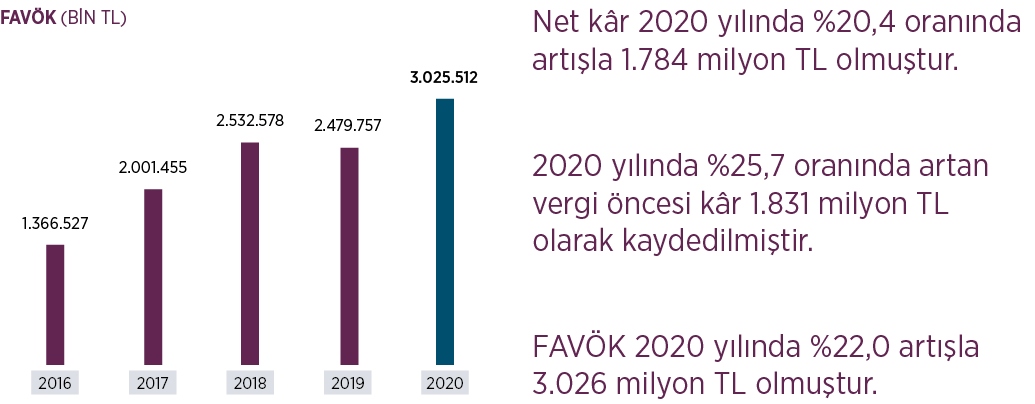 Tofaş 2020 yılında, tüm zamanların en yüksek net kâr rakamına ulaşmıştır. Tofaş’ın net kârı bir önceki yıla göre %20,4 oranında artarak, 1.784 milyon TL olurken, konsolide vergi öncesi kârı %25,7 artış ile 1.831 milyon TL olarak gerçekleşmiştir. FAVÖK ise %22,0 artışla 3.026 milyon TL olarak gerçekleşmiştir.