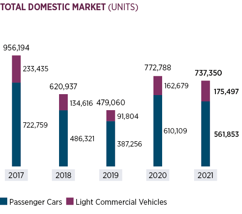 Retail sales of cars and light commercial vehicles in Turkey were down by 4.6% in 2021 as compared with 2020 and numbered 737,350 units sold. Looking at the market’s 2021 performance in more detail however we see that while total car sales (561,853 units) were down by 7.9% year-on, light commercial vehicle sales (175,497 units) were up at exactly the same rate of 7.9%.