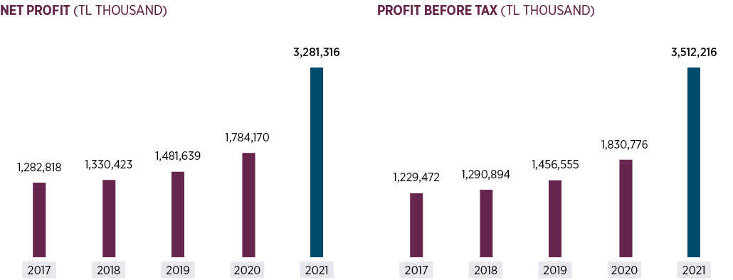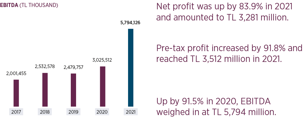 Tofaş registered historically high levels in net profit in 2021. The company’s net profit increased by 83.9% year-on and amounted to TL 3,281 million while its consolidated pre-tax profit was up by 91.8% and weighed in at TL 3,512 million. Tofaş’s EBITDA increased by 91.5% year-on and was recorded as TL 5,794 million.