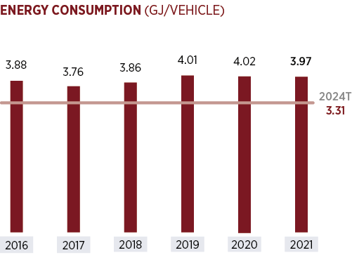 As a result of efforts to decrease fixed-energy consumption in line with its overall goal of reducing carbon emissions, the 3.97 GJ/vehicle energy-consumption performance that Tofaş achieved in 2021 was better than the target that had been set for the year.