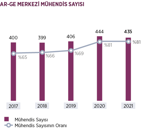 600’den fazla çalışanı olan Tofaş Ar‑Ge Merkezi’nde çalışan yüksek lisans ve doktoralı personel sayısı 2021 yıl sonu itibarıyla 134’tür.