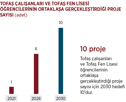 Tofaş faaliyet alanında bulunan konular üzerine, çalışanları ve Tofaş Fen Lisesi öğrencilerinin ortak proje geliştirmelerini teşvik etmektedir. Tofaş 2026 yılına kadar proje sayısını 6’ya çıkararak, bu projeler ile en az 2 patentli çalışma ortaya koymayı hedeflemektedir.