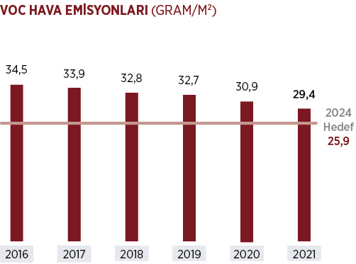 Operasyonel kontrollerin iyileştirilmesi ile son 5 yılda VOC (Volatile Organic Compounds - Uçucu Organik Bileşikler) emisyonlarında %15 düzeyinde iyileşme gerçekleştirilmiştir. Çözücü içermeyen temizlik ürünlerinin kullanılması, one-bell boya teknolojisine geçilmesi, su bazlı elektrostatik boya uygulamaları ve nitrotherm projesi ile VOC emisyonlarında Avrupa Birliği limitlerinin çok altında değerlere ulaşılmıştır.