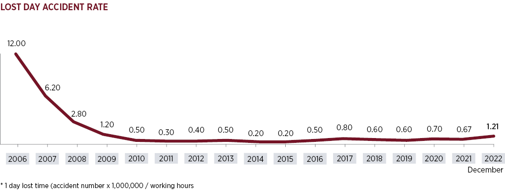 Tofaş makes use of an OHS Management System in order to achieve zero work-related accident and illness rates. Since the beginning of the company’s campaign to continuously improve workplace safety performance, the Lost Time Accident Rate has decreased by 90%. The biggest contributor to a vigorous OHS culture is employee training and OHS training is always a matter of the highest priority at Tofaş. In 2022 4,517 employees received a total of 36,948 hours of OHS training.
