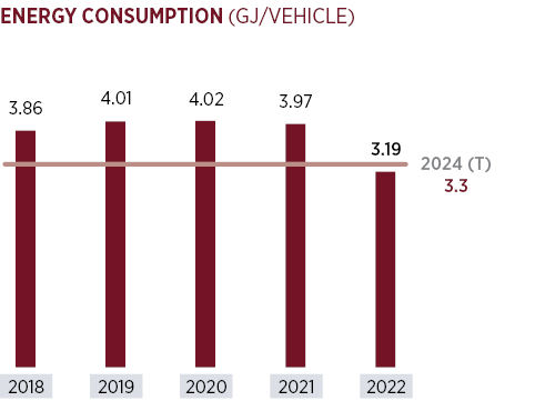 As a result of efforts to decrease fixed-energy consumption in line with its overall goal of reducing carbon emissions, 3.19 GJ/vehicle energy-consumption performance that Tofaş achieved in 2022 was better than the target that had been set for the year.