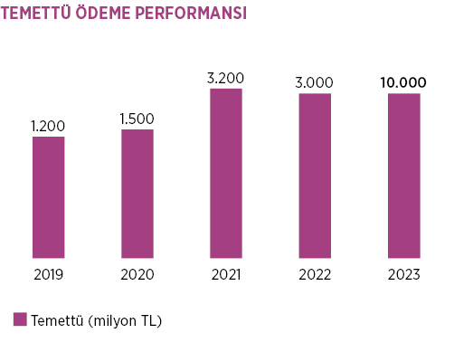 2023 yılında, 2022 yılına ait kâr rakamına ilişkin olarak tek seferde toplam 3.000 milyon TL’lik brüt temettü ödemesi yapılmıştır. 2018-2023 yılları arasında Tofaş tarafından ödenen temettü miktarı 9,8 milyar TL’ye ulaşmıştır. Tofaş yönetiminin 2023 yılına ilişkin kâr payı dağıtımı teklifi ise toplam 10 milyar TL tutarında olup, 2023 yılı net kârı üzerinden %66,3 temettü ödeme rasyosuna işaret etmektedir.