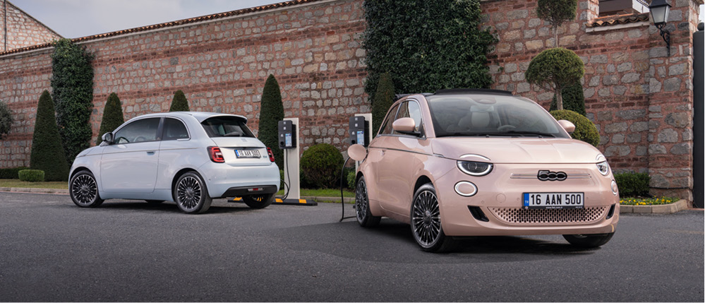 İlk kez dünya yollarıyla buluştuğu 1957 yılından bu yana, otomobil dünyasının ikonik modelleri arasında yer alan Fiat 500’ün, yeni ve tamamen elektrikli versiyonu ile satışa sunuldu. 500e, çevreci yaklaşımını, benzersiz ve zamansız tasarımı, performansı, sessiz ve titreşimsiz sürüş hissiyle birleştiriyor. Segmentinde, 2’nci Seviye Otonom Sürüş Destek Sistemine sahip ilk şehir otomobili olan 500e, 42 kWh kapasiteli lityum iyon bataryalarıyla WLTP standartlarına göre 320 km menzile sahip.