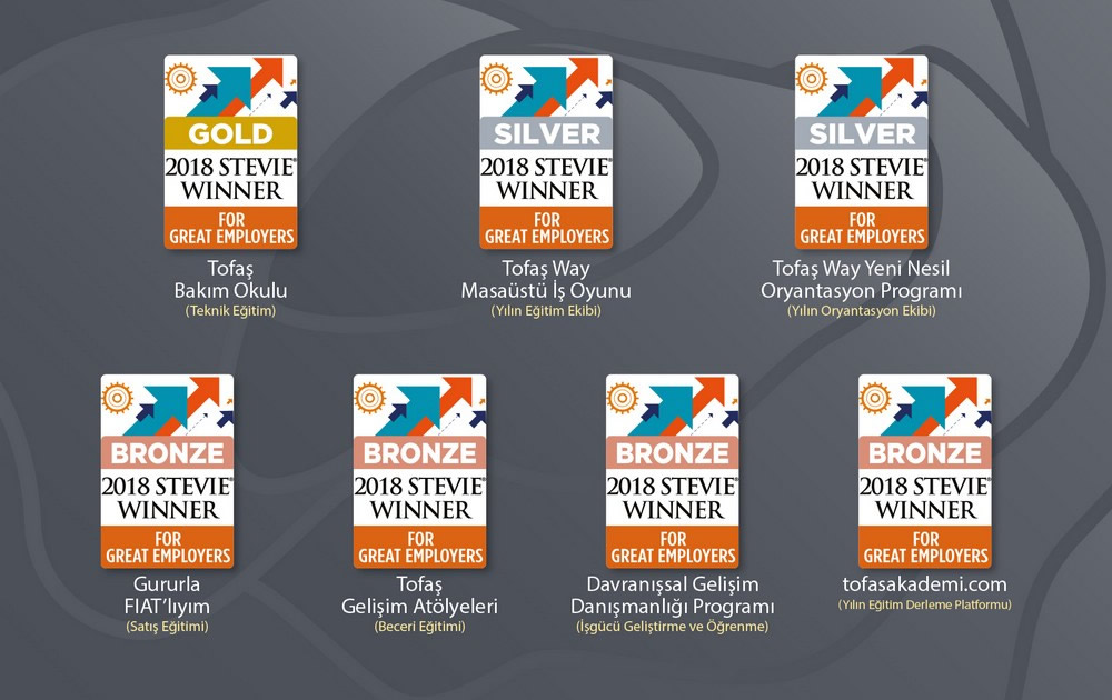 Dünyanın en prestijli ödül kurumlarından biri olan “Stevie” tarafından “2018 En İyi İşverenler” ödüllerinde, Tofaş İnsan Kaynakları biriminin 7 farklı uygulaması ödüle layık görüldü.